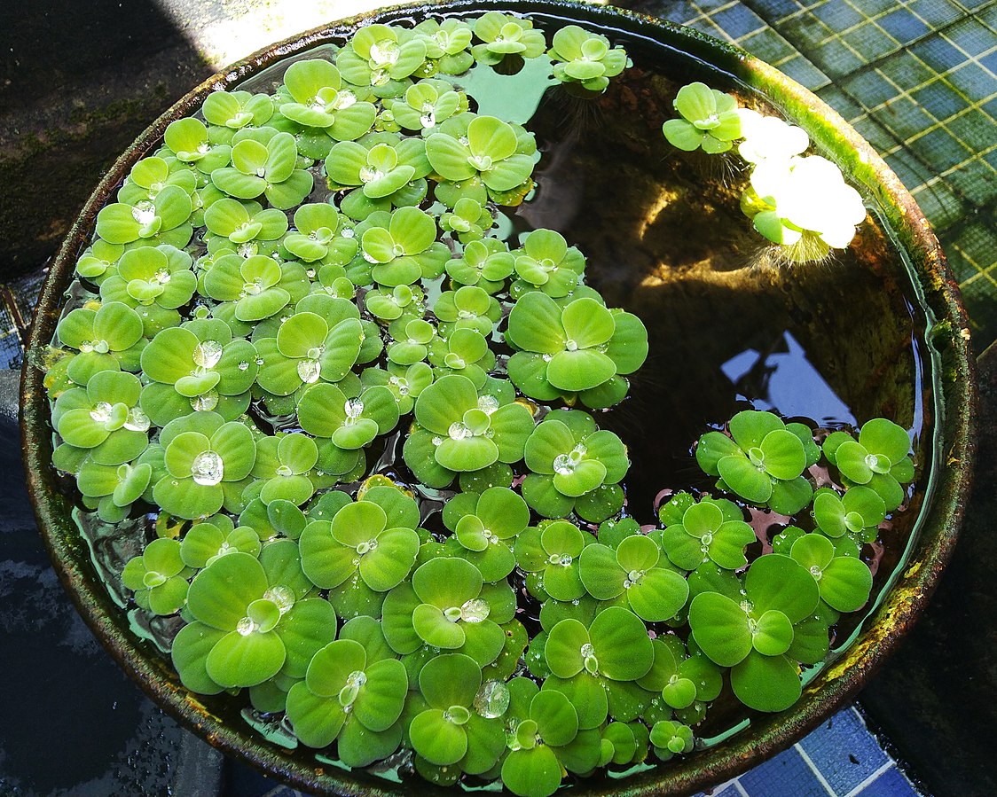 Der Wassersalat wird auch umgangssprachlich Muschelblume genannt. Der Wassersalat ist eine schwimmende und rosettenförmig angeordnete Wasserpflanze mit hell- bis mittelgrün, dicken Blättern die eine samtige Oberfläche besitzen. Die Muschelblume besitzt gelbliche Blüten mit weißem Hochblatt die sich im Blattschopf verstecken und im Sommer blühen. Ihre Blätter werden zwischen 5-14cm und die dichten, im Wasser frei hängenden Wurzeln können bis zu 50 cm lang werden.